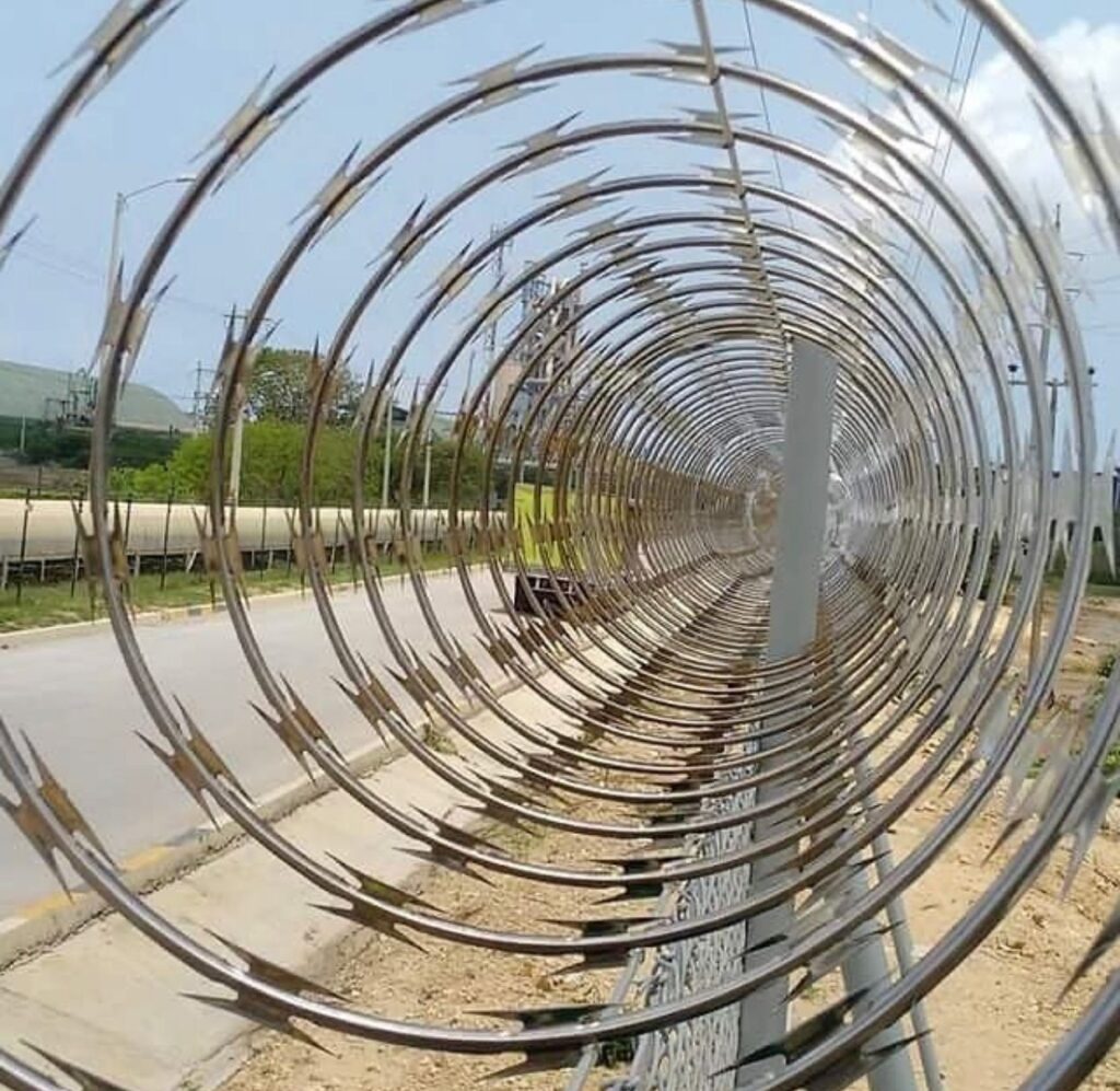 La concertina es una barricada u obstáculo de protección, de forma helicoidal, diseñadas para optimizar la seguridad y protección de cualquier área perimetral. Gracias a su forma de espiral y el diseño de sus cuchillas tipo arpón distribuidas en las espirales, las convierte en una gran barrera para ofrecer oposición y detener físicamente y psicológicamente al transgresor ya que está comprobado que causa grandes lecciones al contacto con ellas.